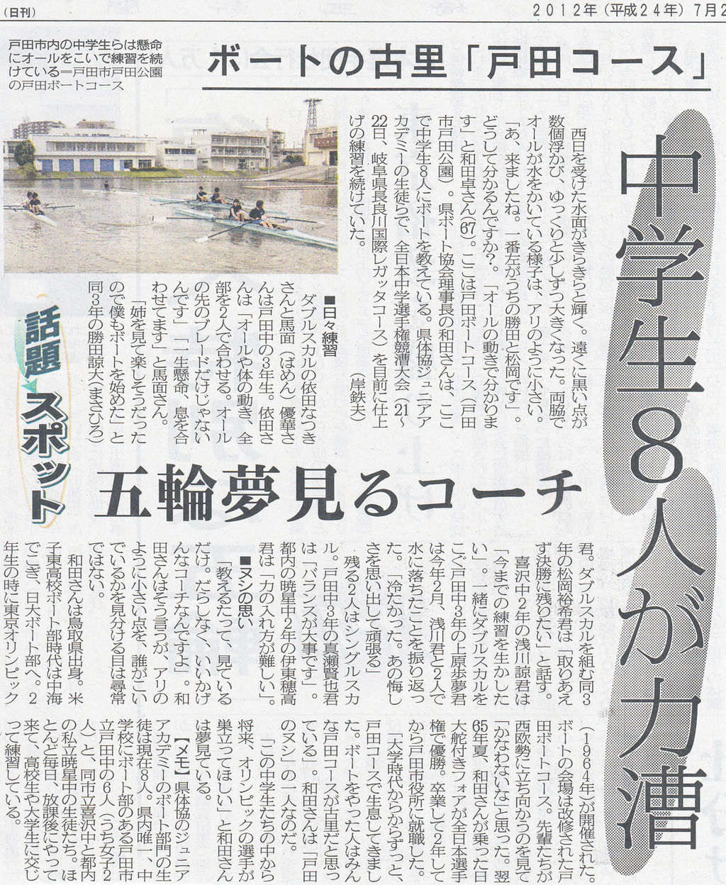 ¡¡À¾Æü¤ò¼õ¤±¤¿¿åÌ̤¬¤¤é¤¤é¤Èµ±¤¯¡£±ó¤¯¤Ë¹õ¤¤ÅÀ¤¬¿ô¸ÄÉ⤫¤Ó¡¢¤æ¤Ã¤¯¤ê¤È¾¯¤·¤º¤ÄÂ礤¯¤Ê¤Ã¤¿¡£Î¾ÏƤǥª¡¼¥ë¤¬¿å¤ò¤«¤¤¤Æ¤¤¤ëÍͻҤϡ¢¥¢¥ê¤Î¤è¤¦¤Ë¾®¤µ¤¤¡£¡Ö¤¢¡¢Íè¤Þ¤·¤¿¤Í¡£°ìÈÖº¸¤¬¤¦¤Á¤Î¾¡ÅĤȾ¾²¬¤Ç¤¹¡×¡£¤É¤¦¤·¤ÆÊ¬¤«¤ë¤ó¤Ç¤¹¤«¡©¡£¡Ö¥ª¡¼¥ë¤Îư¤¤Çʬ¤«¤ê¤Þ¤¹¡×¤ÈÏÂÅÄÂ¤ó¡Ê67¡Ë¡£¤³¤³¤Ï¸ÍÅĥܡ¼¥È¥³¡¼¥¹¡Ê¸ÍÅĻԸÍÅĸø±à¡Ë¡£¸©¥Ü¡¼¥È¶¨²ñÍý»öŤÎÏÂÅĤµ¤ó¤Ï¡¢¤³¤³¤ÇÃæ³ØÀ¸£¸¿Í¤Ë¥Ü¡¼¥È¤ò¶µ¤¨¤Æ¤¤¤ë¡£¸©Â樥¸¥å¥Ë¥¢¥¢¥«¥Ç¥ß¡¼¤ÎÀ¸Å̤é¤Ç¡¢Á´ÆüËÜÃæ³ØÁª¼ê¸¢¶¥ÁæÂç²ñ¡Ê21¡Á22Æü¡¢´ôÉ츩ĹÎÉÀî¹ñºÝ¥ì¥¬¥Ã¥¿¥³¡¼¥¹¡Ë¤òÌÜÁ°¤Ë»Å¾å¤²¤ÎÎý½¬¤ò³¤±¤Æ¤¤¤¿¡£