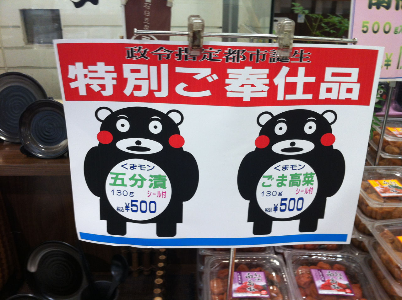 熊本県のPRキャラクター「くまモン」の人気が全国的に広がっている。2010年に誕生してから2年足らずで「ゆるキャラグランプリ2011」で優勝、関連商品の売り上げも昨年1年で25億円を超えた。一気に営業部長に出世するというストーリー性を持たせた露出戦略や、デザインの権利を県が買い取り使いやすくするなどの工夫が功を奏した。