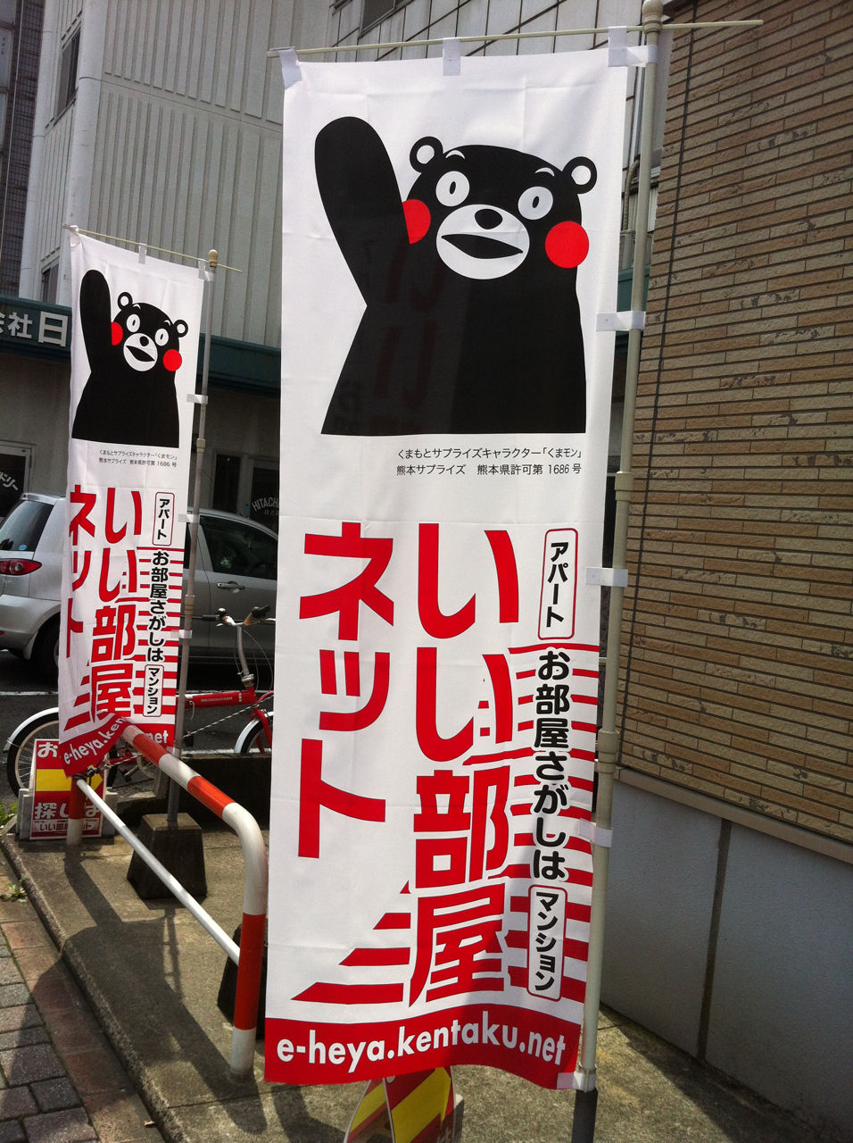 10年12月からは民間企業などへのキャラクター使用も解禁。熊本県の企業や県産品を使った商品などを対象に無償で許可している。キャラクターの権利をデザイナーから県が買い取っており、「商品に合わせてデザインが変えられる使い勝手の良さも人気の要因では」(熊本市の鶴屋百貨店)と好評だ。ゆるキャラグランプリ優勝後は使用許可申請が4倍の月400件ほどに増え、現在も衰える気配がない。