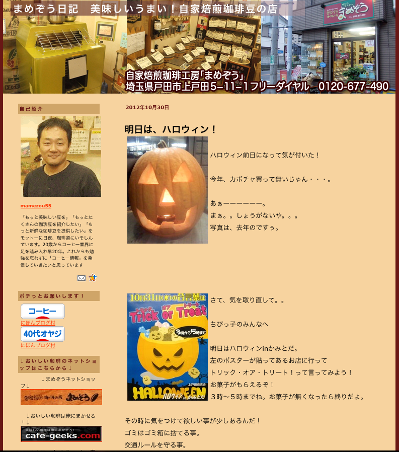 どんなお店で上戸田ハロウィンが開催されているかは、まめぞうさんのブログをご参照ください。まめぞうさんのところでは優しいお兄さんが迎えてくれることだと思います。