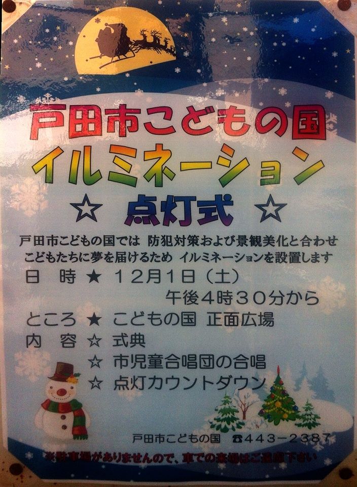 戸田市こどもの国イルミネーション点灯式、カレンダーの12月1日に丸印を付けておいてくださいね!