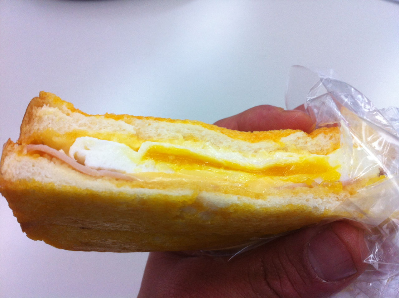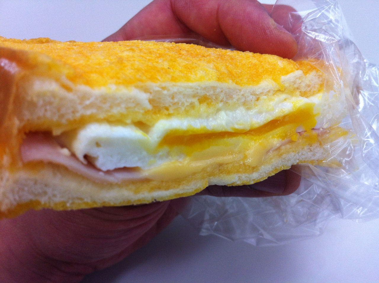 ハムエッグを挟んでいるパンもフレンチトーストのように味付けされ、それがハムエッグにちょうどあって、パンの柔らかさとともに美味しい一品に仕上がっていました。