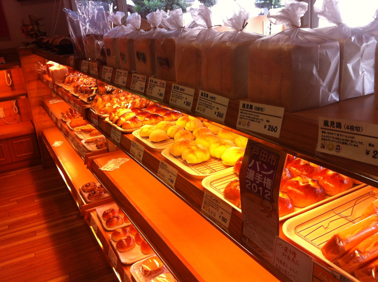 今回のお目当ては、暖家さんがエントリーされている「ハムエッグトースト」でした。暖家さんでは「カレーパン」やその他いろいろある食事パンが私のお気に入り。昨日はちょうど午前中から戸田市商工会で経営指導の仕事があったため、ランチ用に数種類のパンを買い求めました。