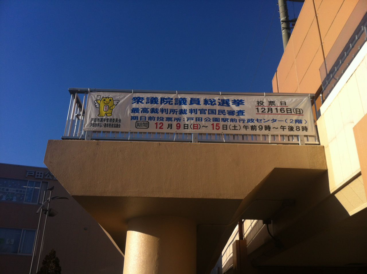戸田公園駅前行政センター(2階)でも12月9日(日)から15日(土)までの間に期日前投票ができます。