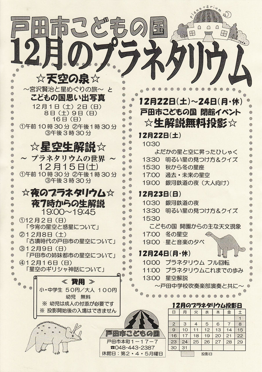 先日このブログでも報告した戸田市こどもの国の閉館ですが、あのスイカドームの内側であるプラネタリウムが、明日15日(土曜日)明後日16日に開催されます。