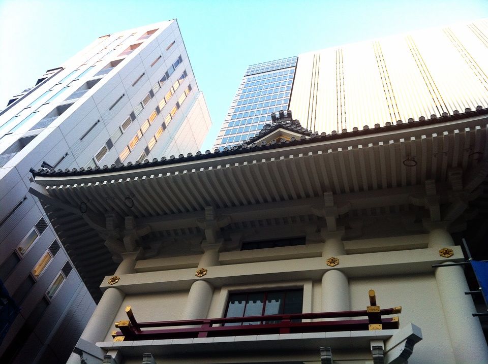 築地本願寺を後にして東銀座まで歩いて行くと、今建て替え工事を行っている新しい歌舞伎座がその姿の一部を現していました。