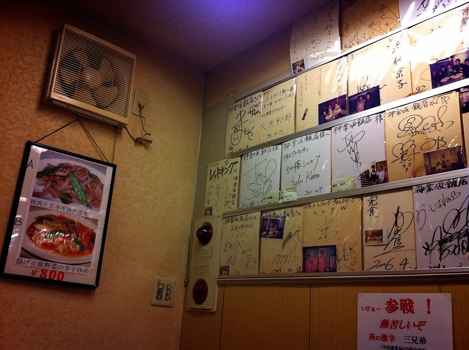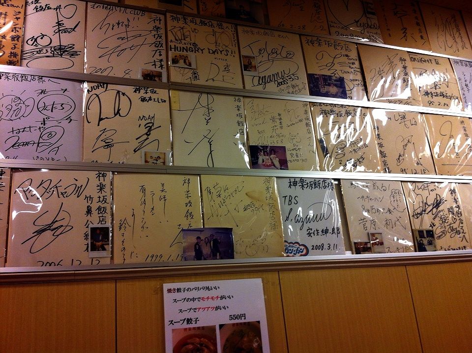 芸能人やテレビ番組の名前の色紙も多いので、ふーん、ここは有名店なんだなぁと思いました。
