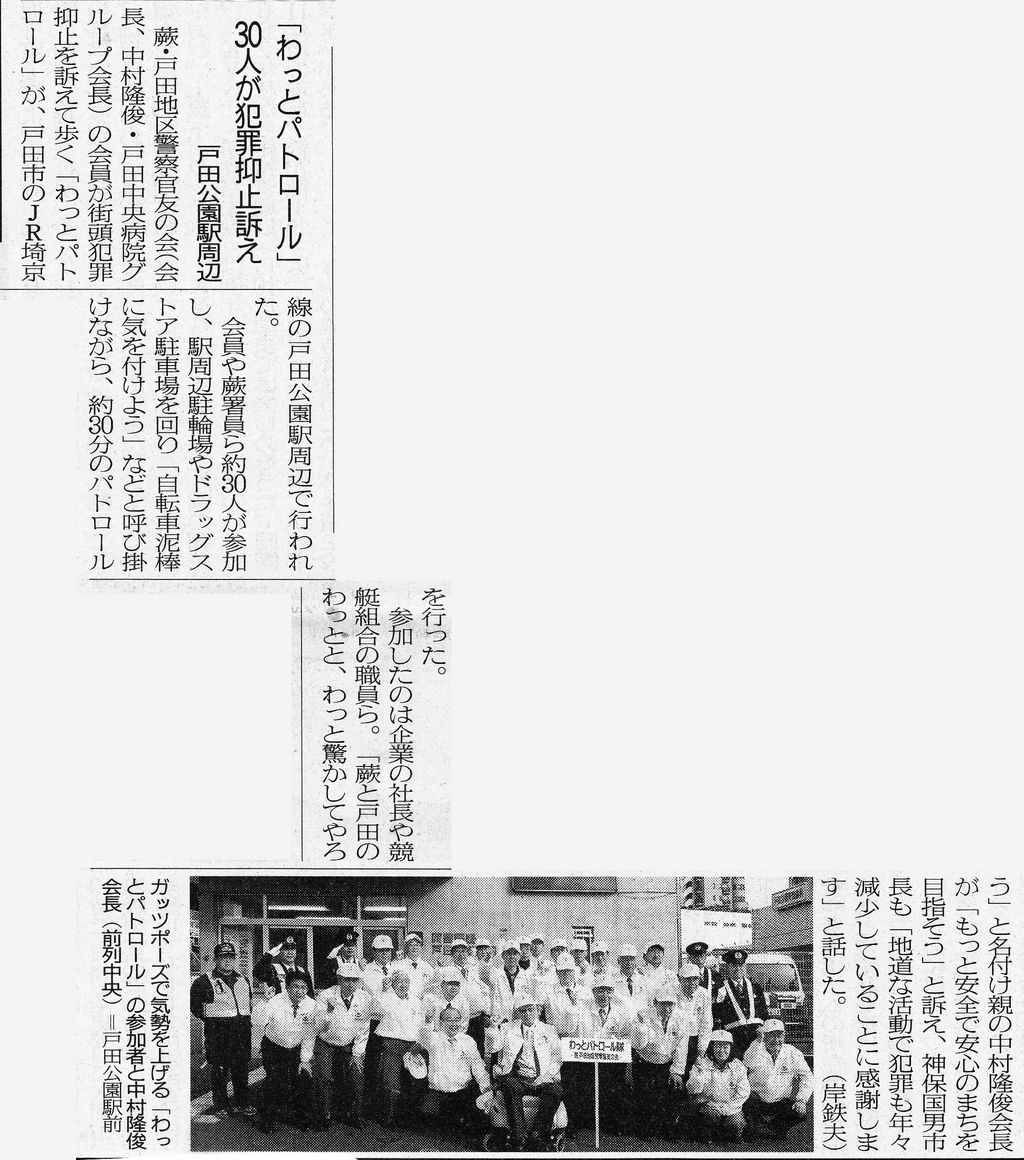 ¡Ö¤ï¤Ã¤È¥Ñ¥È¥í¡¼¥ë¡×30¿Í¤¬ÈȺáÍÞ»ßÁʤ¨¡¡¸ÍÅĸø±à±Ø¼þÊÕ