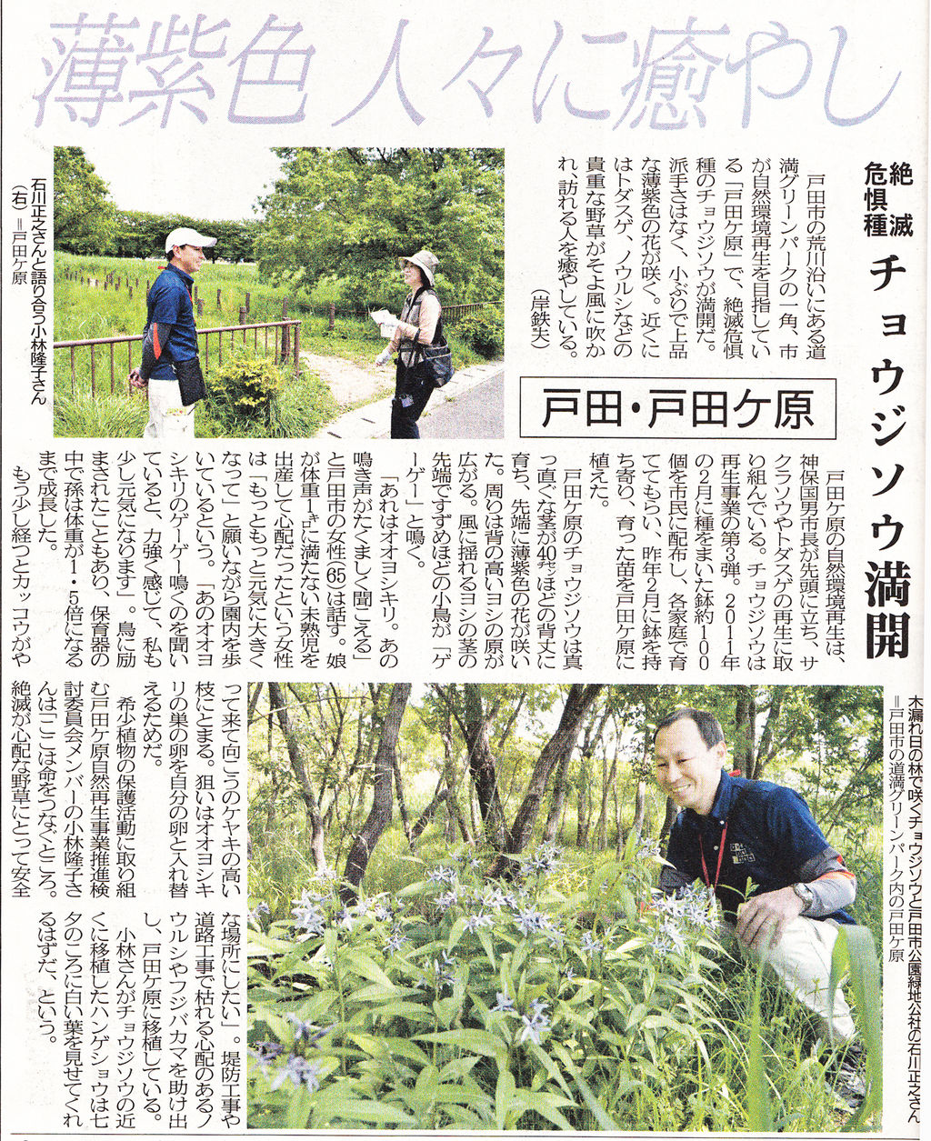 本日の埼玉新聞にカラー写真入り記事が掲載されました。私もよく存じ上げている戸田市公園緑地公社の石川正之さんが写真に写られていて嬉しくなりました。
