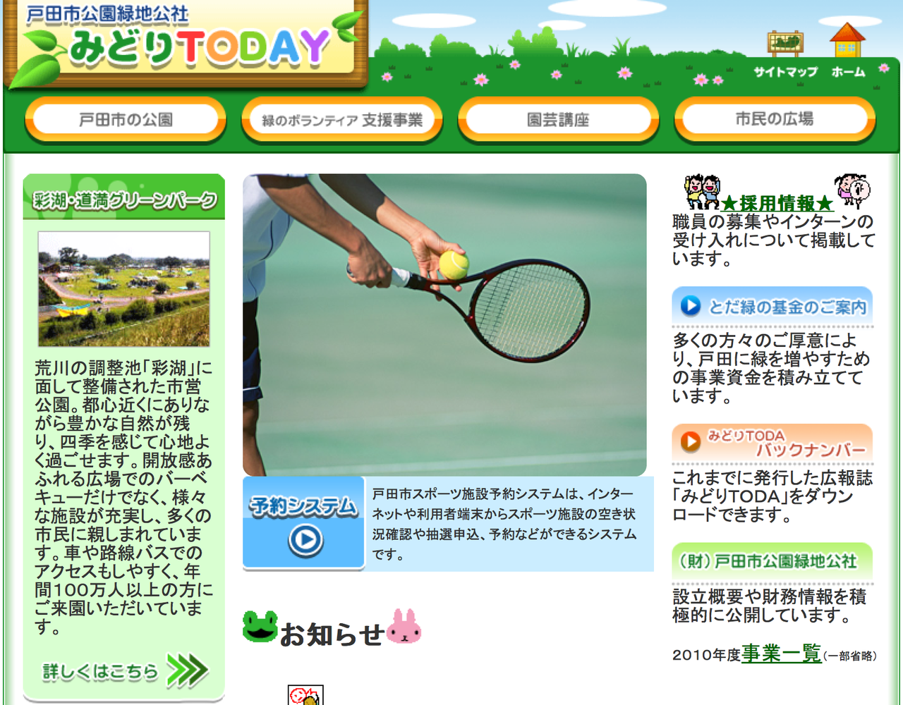 戸田市のトコバスの美笹循環(北戸田駅から毎時50分に発車)に乗り「道満」バス停で降りると、そこが公益財団法人戸田市公園緑地公社です。