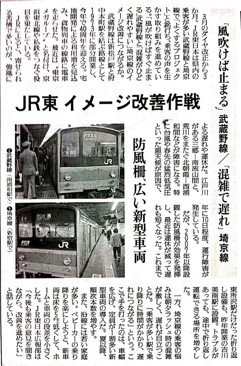 本日の読売新聞に埼京線の記事が掲載されていました。