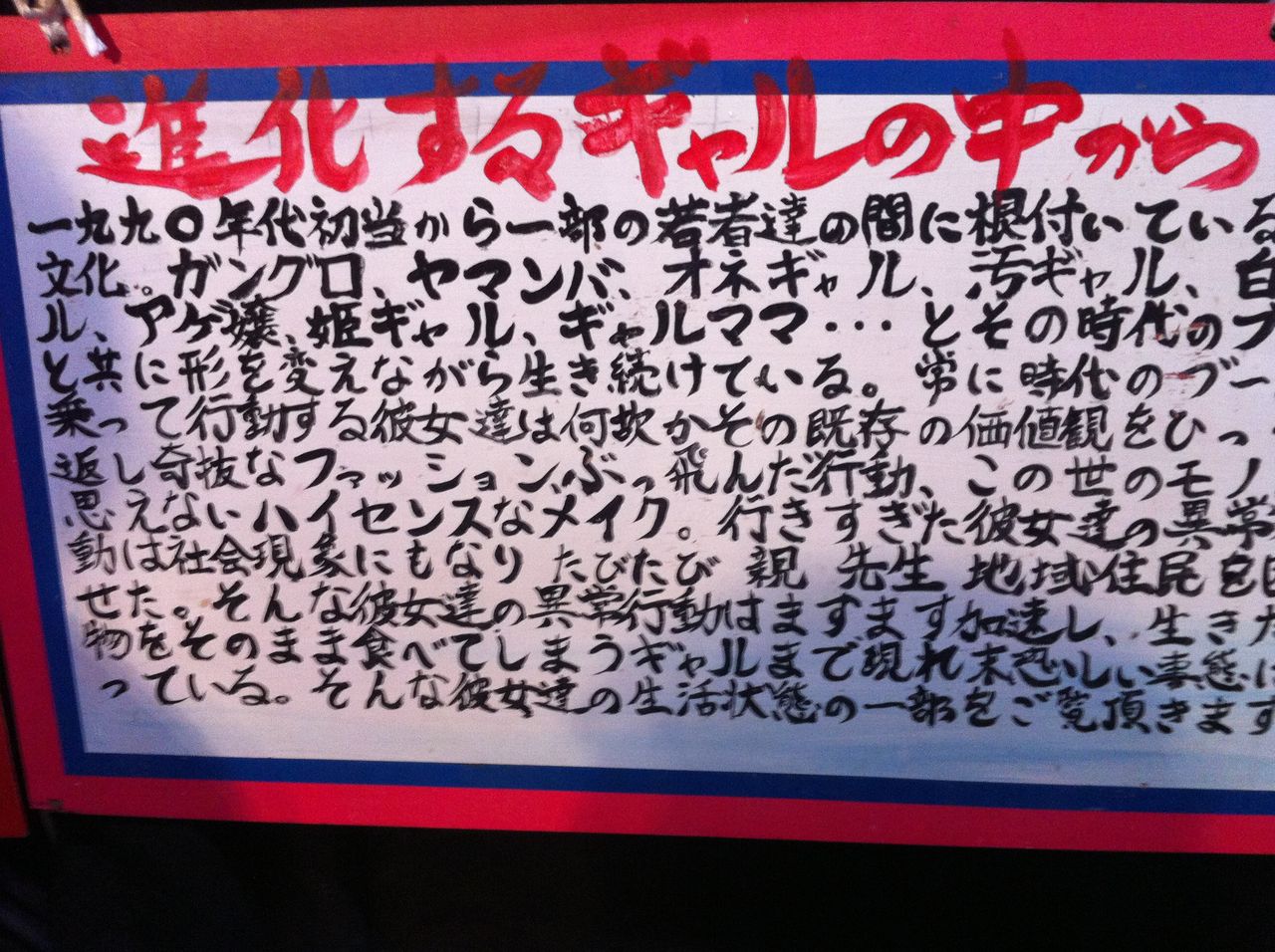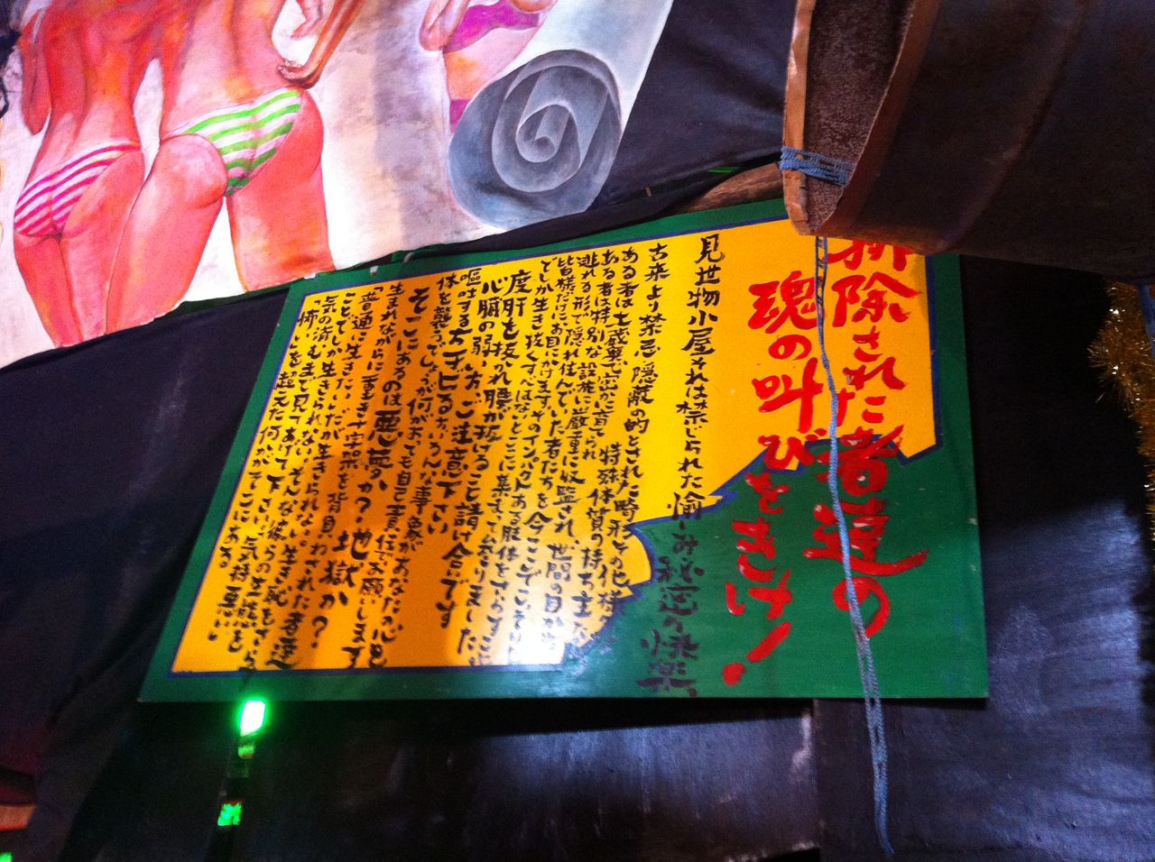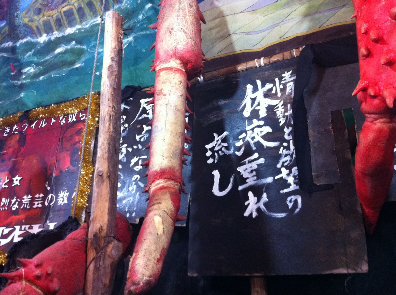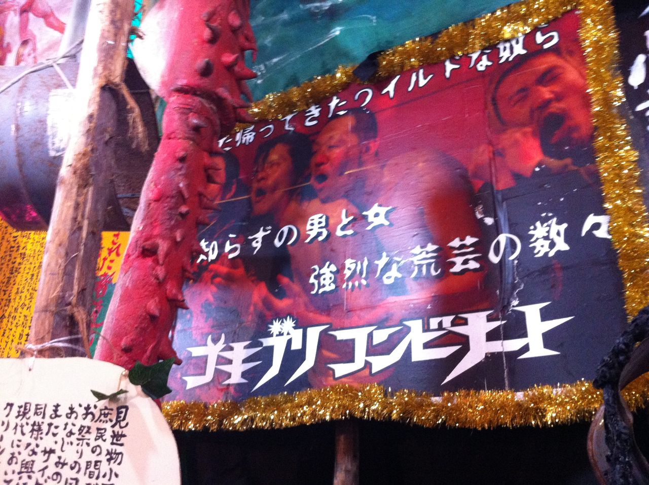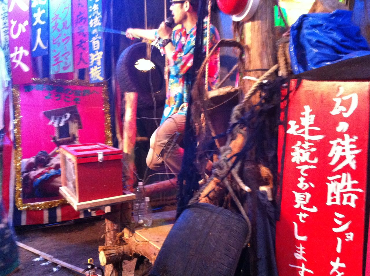 ちなみに、この「見世物小屋」は数年ぶりに復活したそうです。この小屋をやっているのは「ゴキブリコンビナート」という劇団だそうで、インターネット検索してみると、なかなか独特な雰囲気をもつ、ある意味異次元世界のグループみたいです。ネットでは賛否両論あるようですが、私はその舞台を見てみたいと思いましたね。