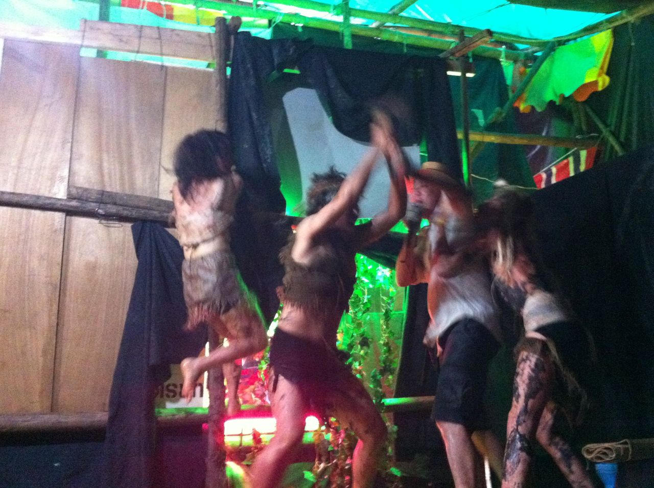 ・・・しばらく沈黙が続いた後、突然、舞台のあちらこちらから原住民が飛びだしてきました。