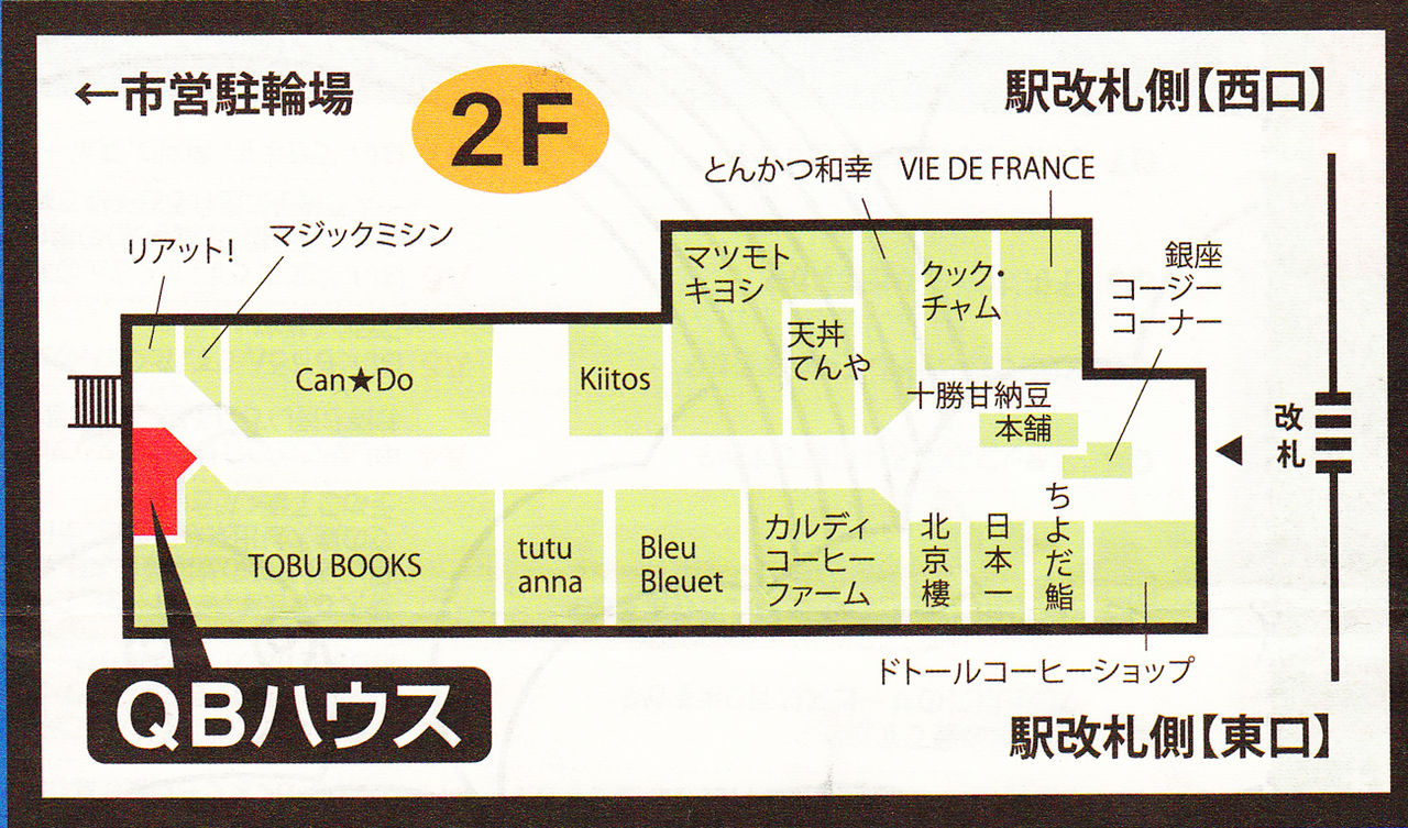 昨日の朝刊に7月31日にリニューアルオープンするビーンズ戸田公園南側2階に出店するQBHOUSEの広告が入っていて、そこに新しい店舗配置図が掲載されていました。