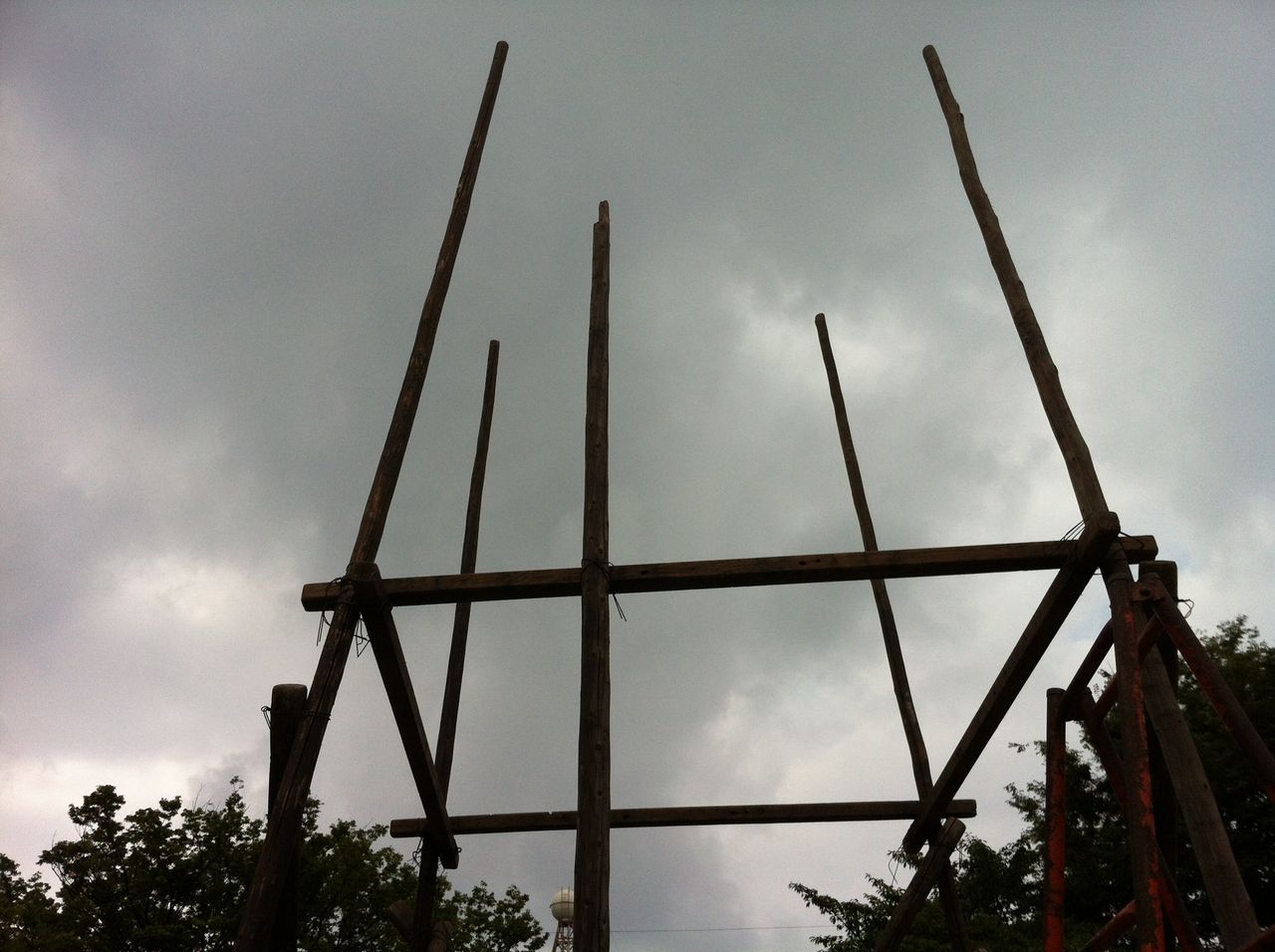うちの鍛冶谷町会は、丸太を組み合わせてつくりあげるやり方です。