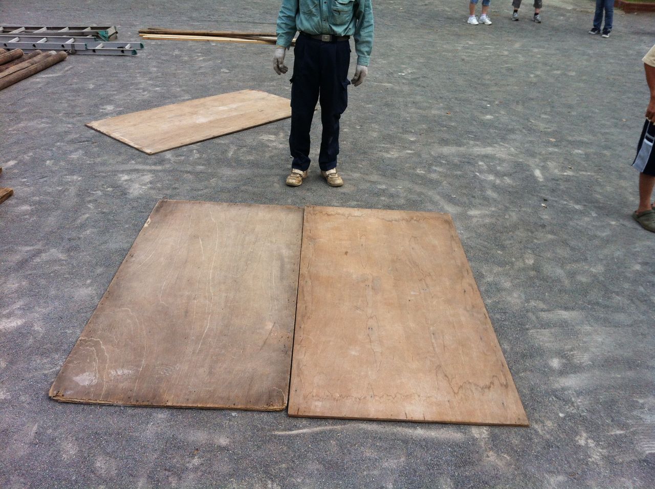 壇上にベニヤをおき、釘打ちで固定していきます。