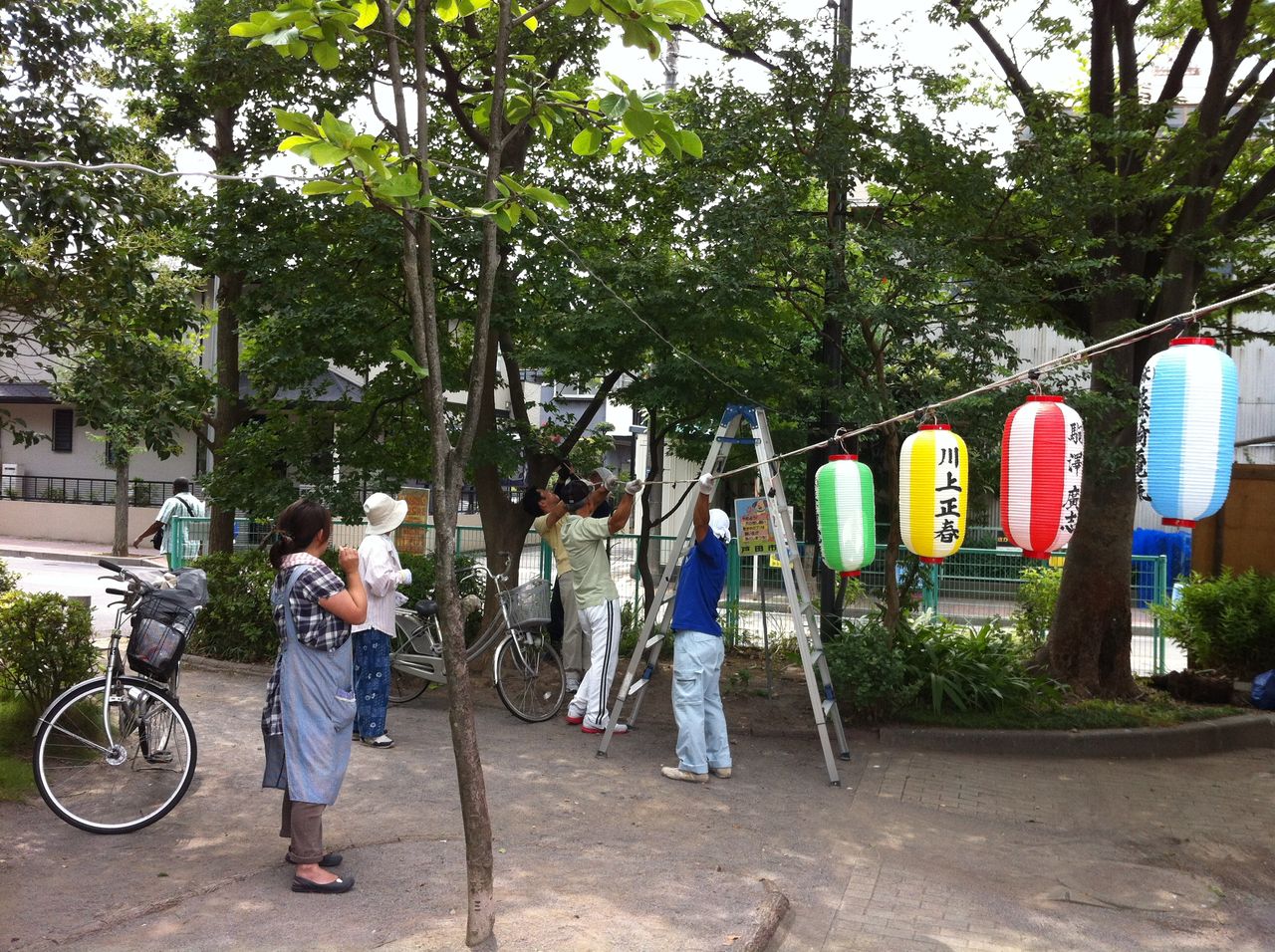 町会でずっと続いてきた夏の風物詩。作業は午前7時から12時近くまでかかりましたが、皆で力をあわせてつくり上げたことで、いっそう皆の心が繋がったように思います。これが地域の人を結びつけ、いざという時の助け合いに繋がります。