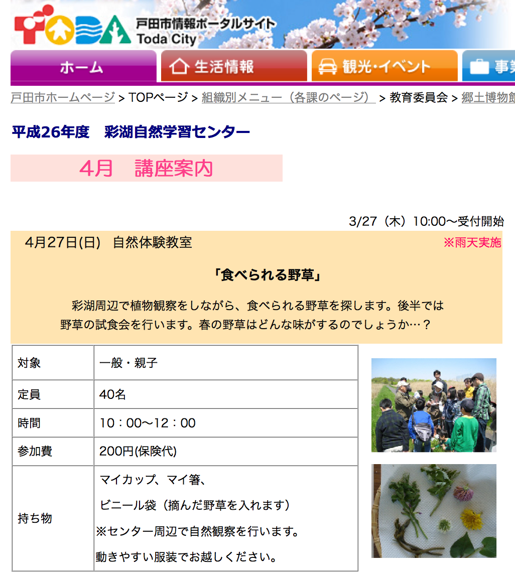 「食べられる野草」がそのテーマです。