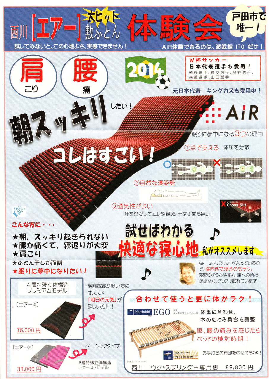 そして横になったのはあのJリーガーも今人気の西川のエアー敷布団でした。