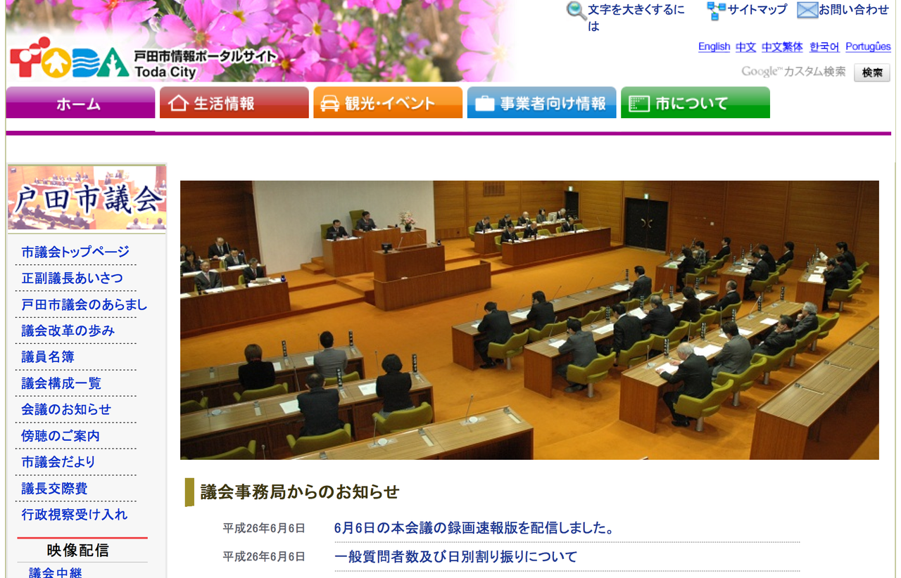 戸田市議会では、本議会をインターネットでも中継しています。お時間とご関心のある方は、戸田市議会ホームページから当日御覧下さい。また、過去の映像も観ることができます。
