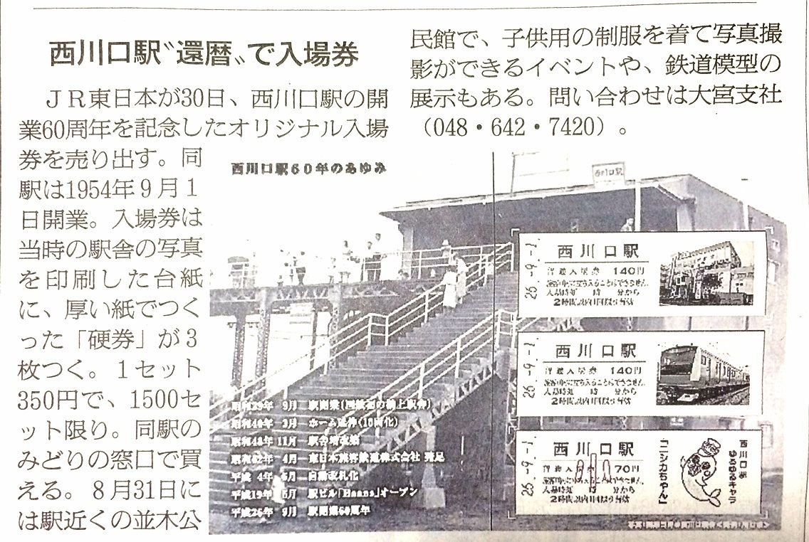 2014年08月13日 西川口駅開業60周年記念イベントが8月30日31日開催 西川口駅が今年9月1日に開業60周年を迎えるということで、この記念イベントが8月末に開催されます。 30日土曜日は西川口駅西口で、31日日曜日は西川口駅東口で、記念イベント、パレードなどがあるたのこと。 また、西川口駅のみどりの窓口では、記念入場券が販売されるとのこと。鉄道ファンにとっては押さえておきたいところですね。 「お知らせ」カテゴリの最新記事 < 前の記事次の記事 > コメント コメントフォーム 名前 コメント 評価する リセット リセット 顔 星 投稿する 情報を記憶 トラックバック