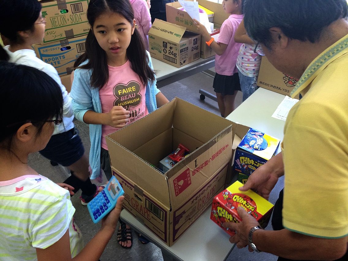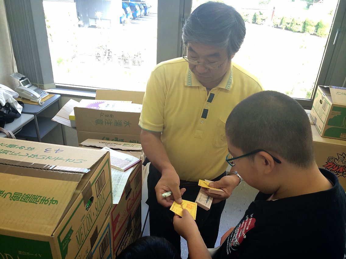 まずは、毎年仮の「問屋さん」役として、対応くださっている金子商店の金子さんが、先日子供たちが書いた発注書に書かれた商品を持ってきてくださいました。