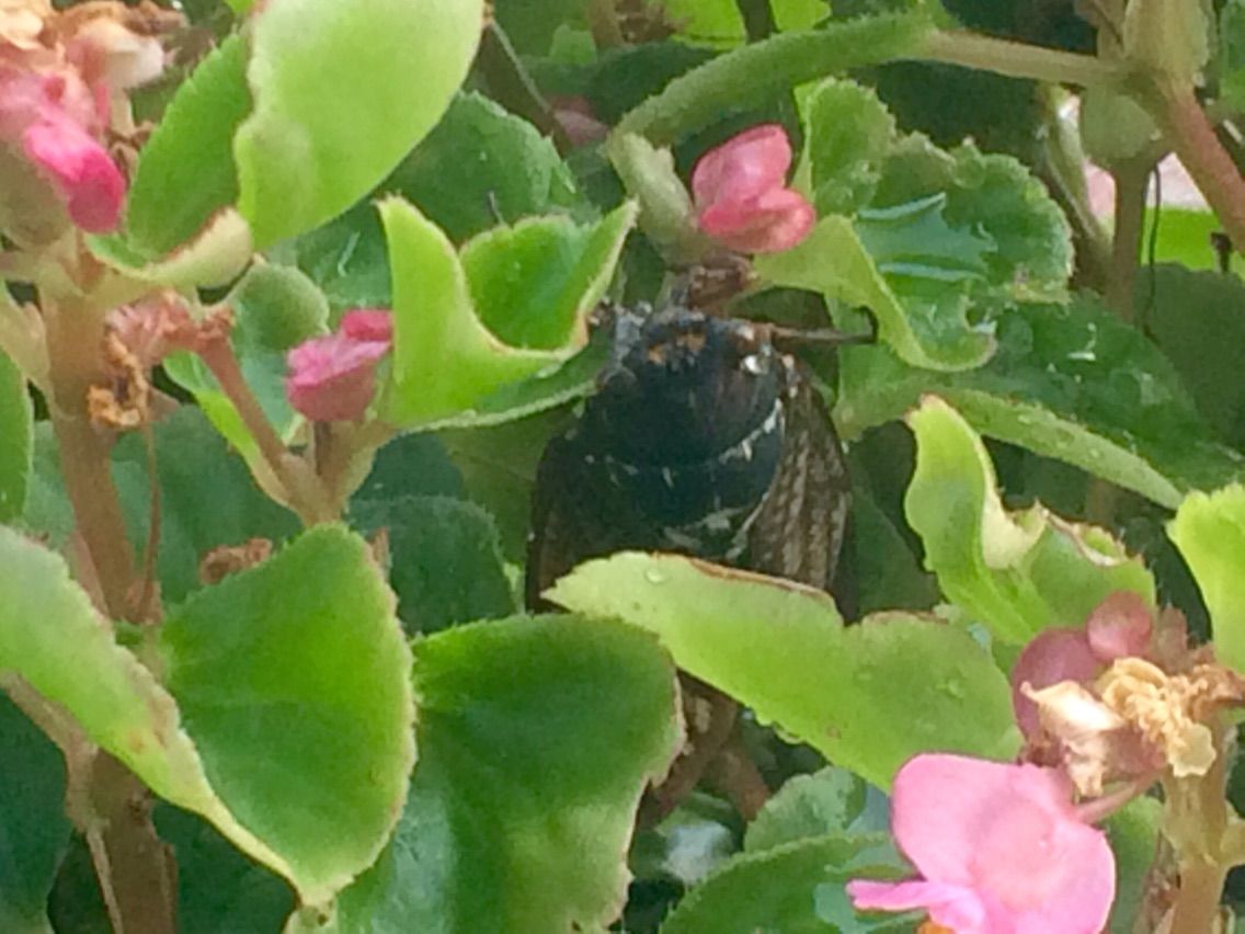 それから私はマンションのベランダで花やハーブを育てているのですが、花に水をやろうとしたら、花の陰で休んでいる先約がいました。