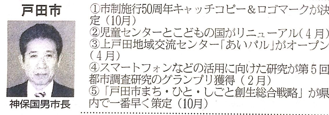 埼玉新聞にも毎年年末恒例の「首長が選んだわが街5大ニュース」の連載が始まり、今日は神保国男・戸田市長が掲載されました。