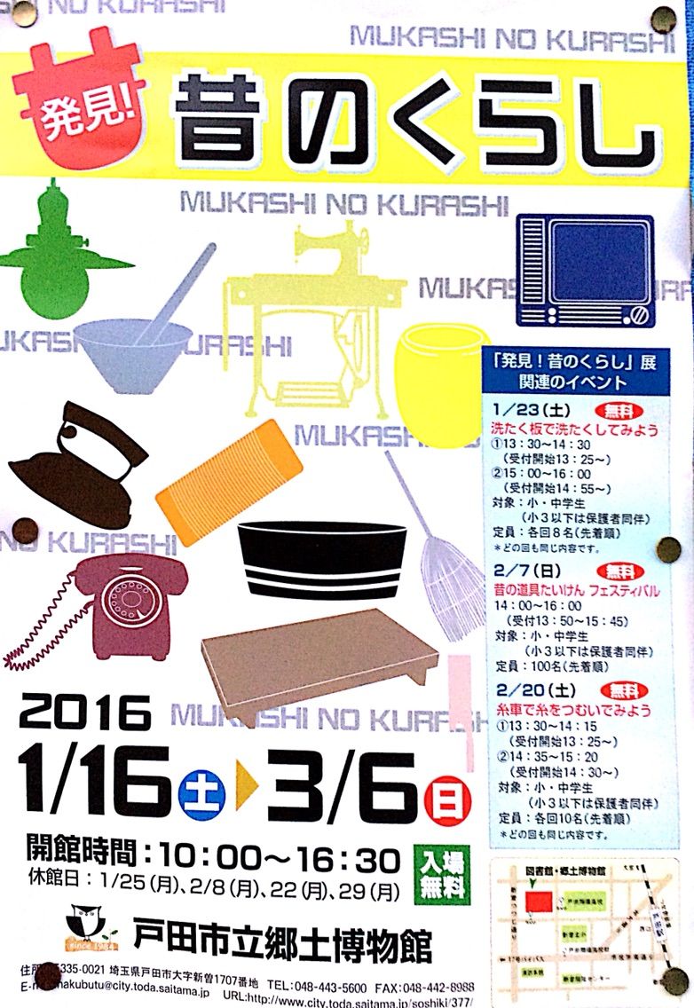 2015年12月28日 発見!昔のくらし展 1月16日から戸田市立郷土博物館で始まります! 私が毎年楽しみにしている企画展が来年早々に始まります。 「発見!昔のくらし」展です。 でも、正直、自分が子供の頃に祖父母の家で目にしていたものもあって、自分が年齢を重ねたことを嫌でも意識させられます。 (^◇^;) 昭和は遠くなっちゃったかな。 それでも、子供の時の思い出は心の中で光り輝いています。 1月16日開催。3月6日まで。 皆様もどうぞ。 「戸田市」カテゴリの最新記事 < 前の記事次の記事 > コメント コメントフォーム 名前 コメント 評価する リセット リセット 顔 星 投稿する 情報を記憶 トラックバック