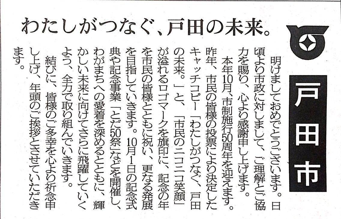 2016年01月08日 (埼玉新聞)戸田市の年頭抱負 今朝の埼玉新聞12面13面に埼玉県内自治体の年頭抱負が掲載されていました。 戸田市は12面に掲載。 やはり何と言っても、市制施行50周年が目玉です。 また、ここには書かれていませんが、私も参加させていただいている上戸田商店会の上戸田ゆめまつりも今年20周年です! いろいろと記念事業が予定されている今年の戸田市です! (埼玉新聞 2016年1月9日 12面) 「戸田市」カテゴリの最新記事 < 前の記事次の記事 > コメント コメントフォーム 名前 コメント 評価する リセット リセット 顔 星 投稿する 情報を記憶 トラックバック