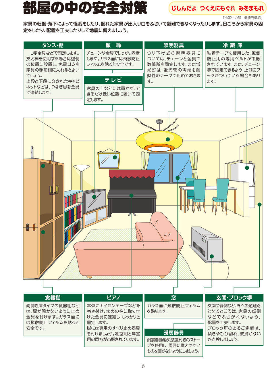 また、愛知県の「家庭でできる地震対策」サイトでの防災ガイドがわかりやすかったので紹介いたします(画像をクリックすると拡大表示します)。