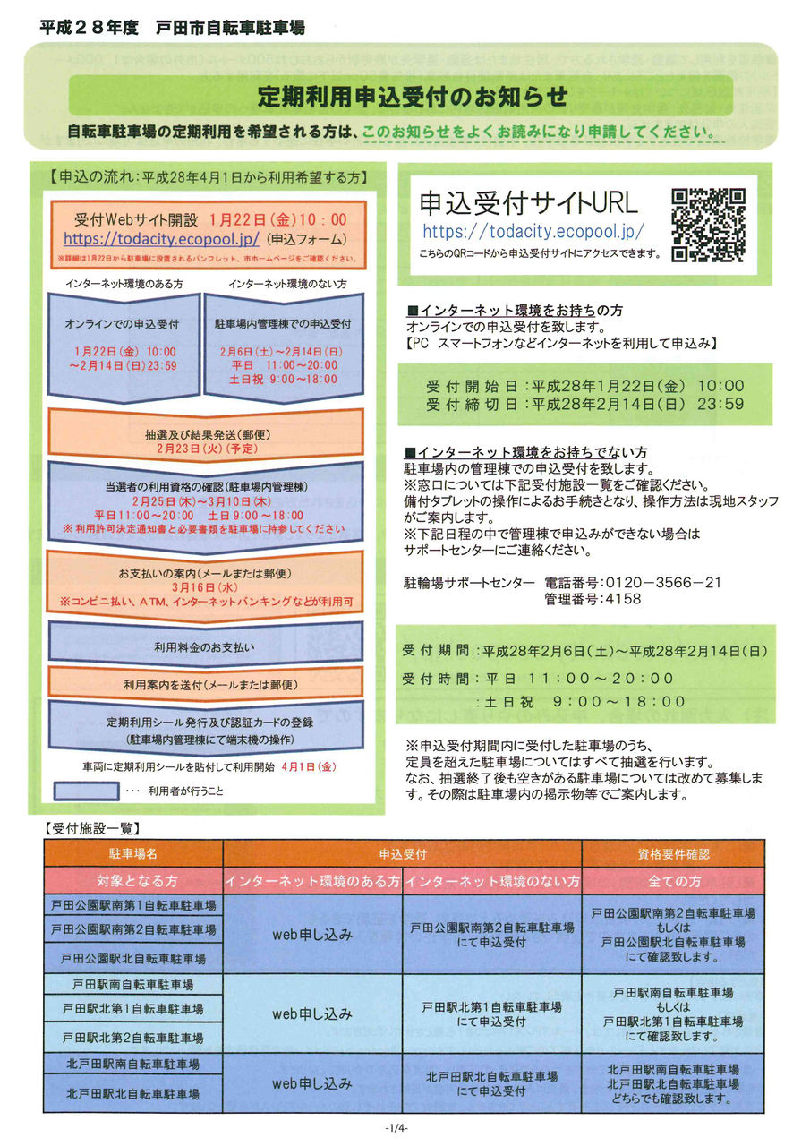 本日から戸田市自転車駐車場の定期利用申込み(抽選)受付が始まりました。