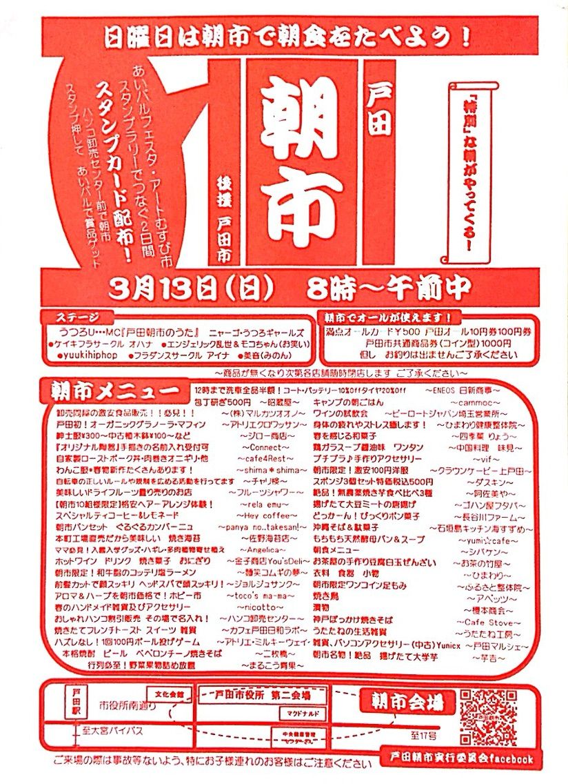 こちらは3月13日(日)のみ開催。8時から12時まで。