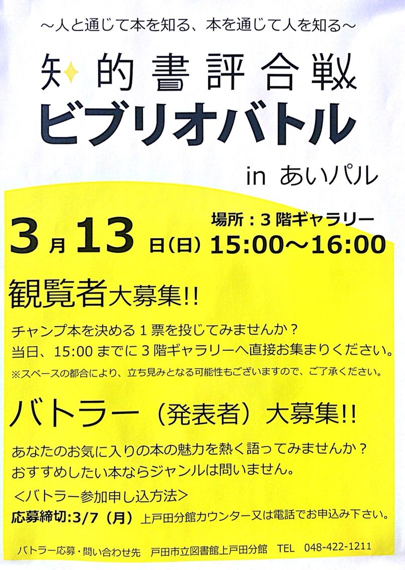 今週末はあいパルフェスタが開催されますが、それに合わせて図書館でも雑誌リサイクルや書評を競うビブリオバトルが企画されています。こちらも楽しみです!