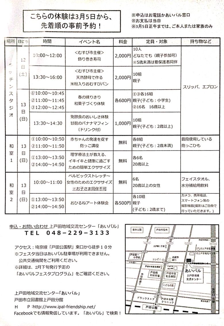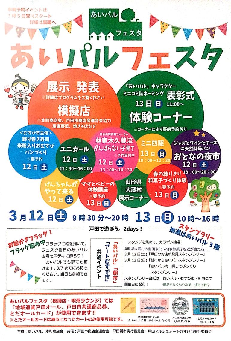 2016年03月12日 上戸田地域交流センターあいパルであいパルフェスタ開催中 〈上戸田地区の方へ〉 今日と明日、上戸田地域交流センターあいパルであいパルフェスタが開催されます。 展示や発表、模擬店などがあるあいパルのお祭り。 今日、12日土曜日は18時から20時まで「おとなの夜市」もあるようです。 このイベントについて詳しくはチラシをご参照ください。 私ももう少ししたら行ってきます。 「戸田市」カテゴリの最新記事 < 前の記事次の記事 > コメント コメントフォーム 名前 コメント 評価する リセット リセット 顔 星 投稿する 情報を記憶 トラックバック