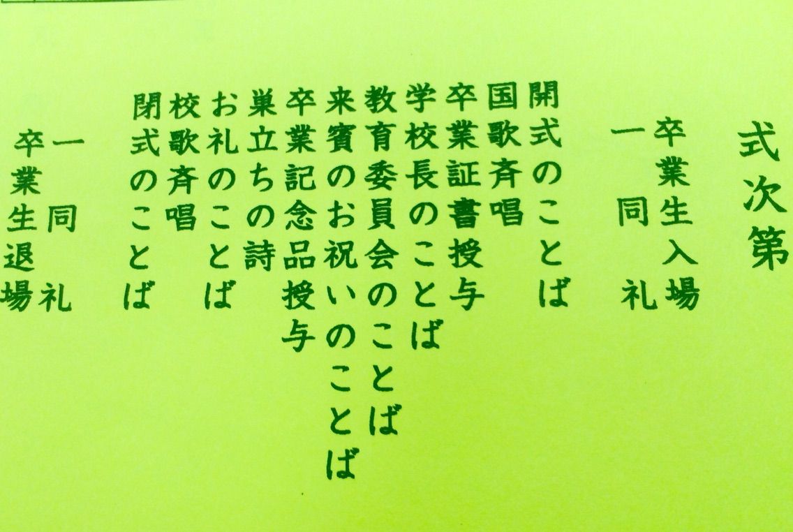 卒業証書授与のあと、来賓の挨拶もありましたが、毎朝学校の門でおはよう!の声がけをしていたPTA副会長さん(会長が体調不良のため代理出席)の挨拶が心にしみました。愛情をもって子ども達に接してきた方だからこそのお話。最初はうつむき加減だったり挨拶もなかった子ども達が毎日毎日繰り返す中で大きく返事を返してくれたり、アイコンタクトをしてくれるようになったという話でした。