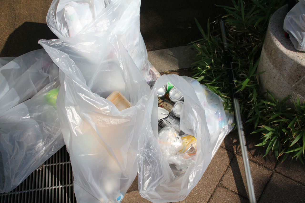 8時20分過ぎになると、みなそれぞれの場所で拾ったゴミをもってまた後谷公園東南角口に集まってきます。