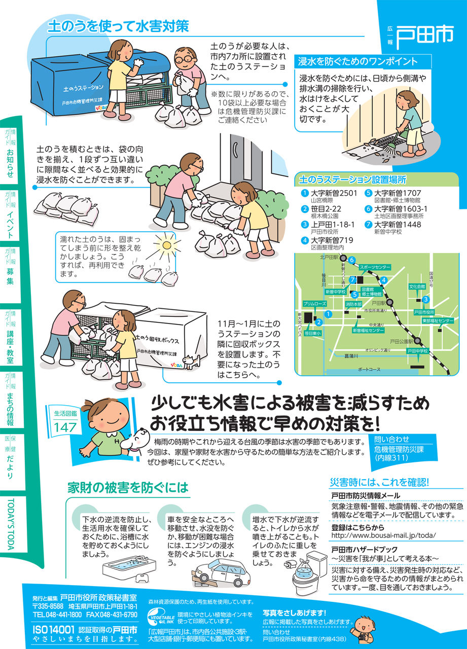 大雨被害に備えて、戸田市の土のうステーションの場所をチェックしておきましょう。