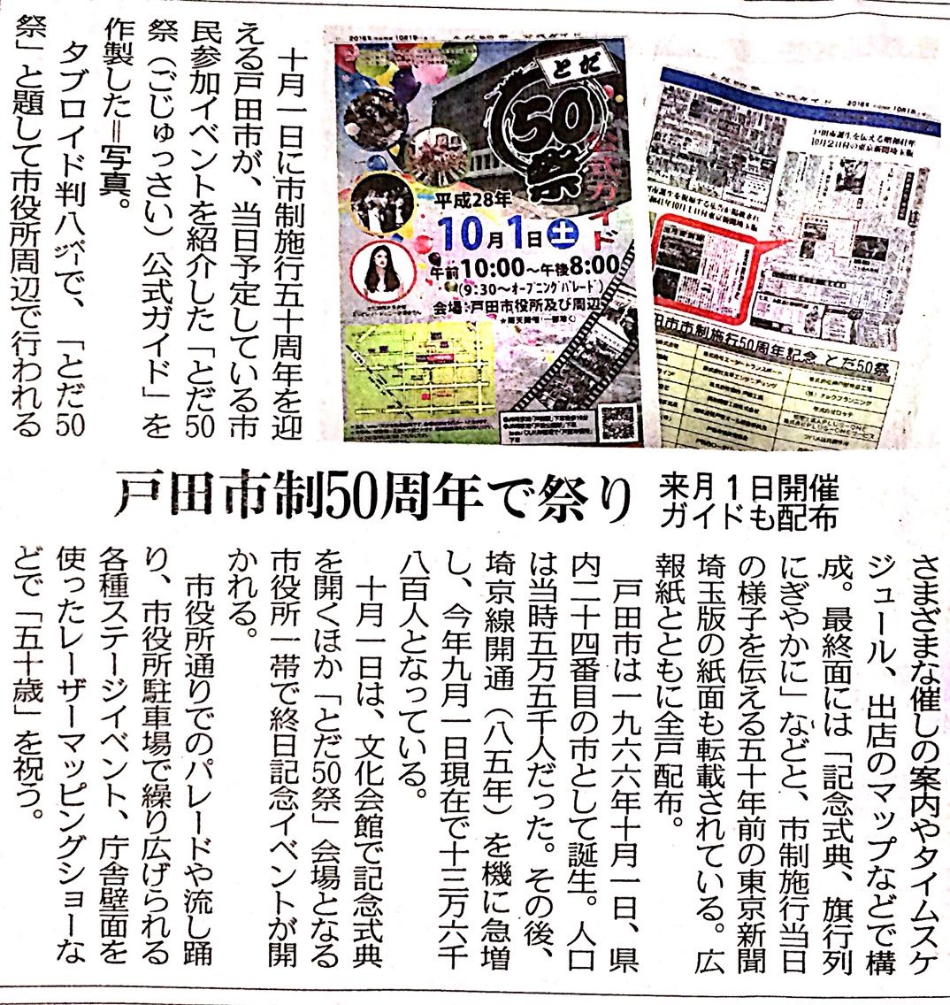 9月26日の東京新聞24面にはその戸田50祭公式ガイドについての記事が掲載されました。