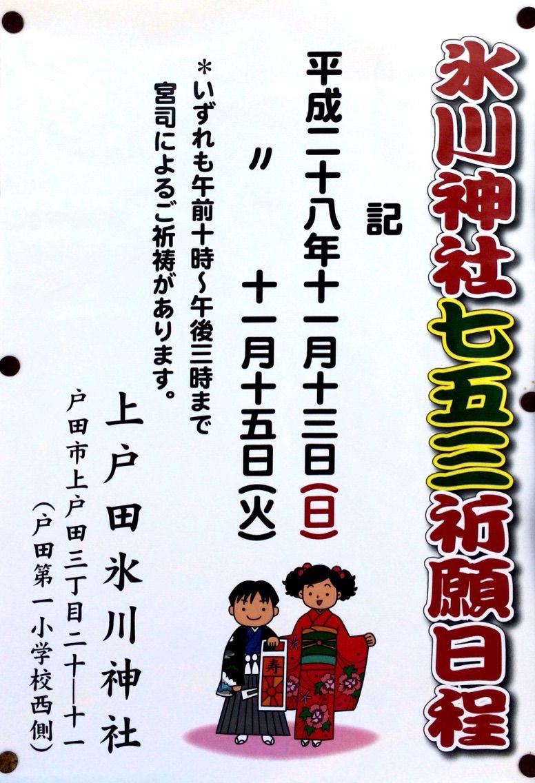 11月13日(日)15日(火)に戸田市上戸田氷川神社で七五三祈願が行われます。いずれの日も10時から15時まで。