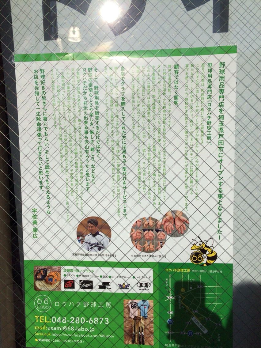 ロクハチ野球工房というそのお店、もと千葉ロッテマリーンズの宇佐美選手のお店です。