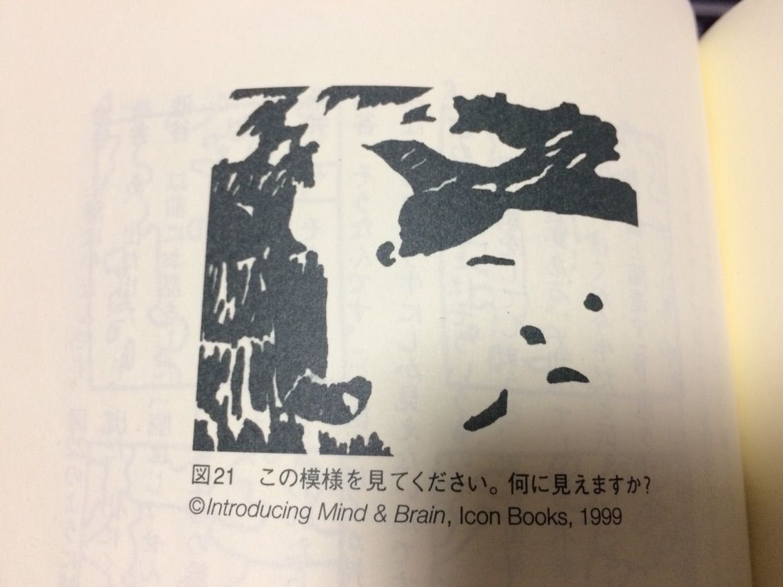 その後に、この本にある上記の「絵」をプリントした紙を全員に配り、さて何にみえるだろう?と質問。