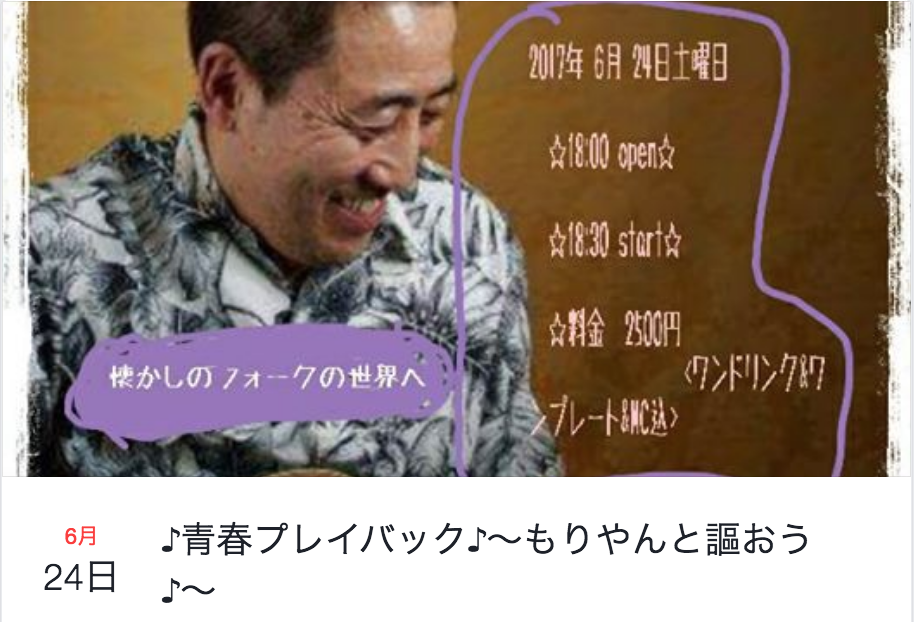 「青春プレイバック〜もりやんと謳おう!」というイベント。