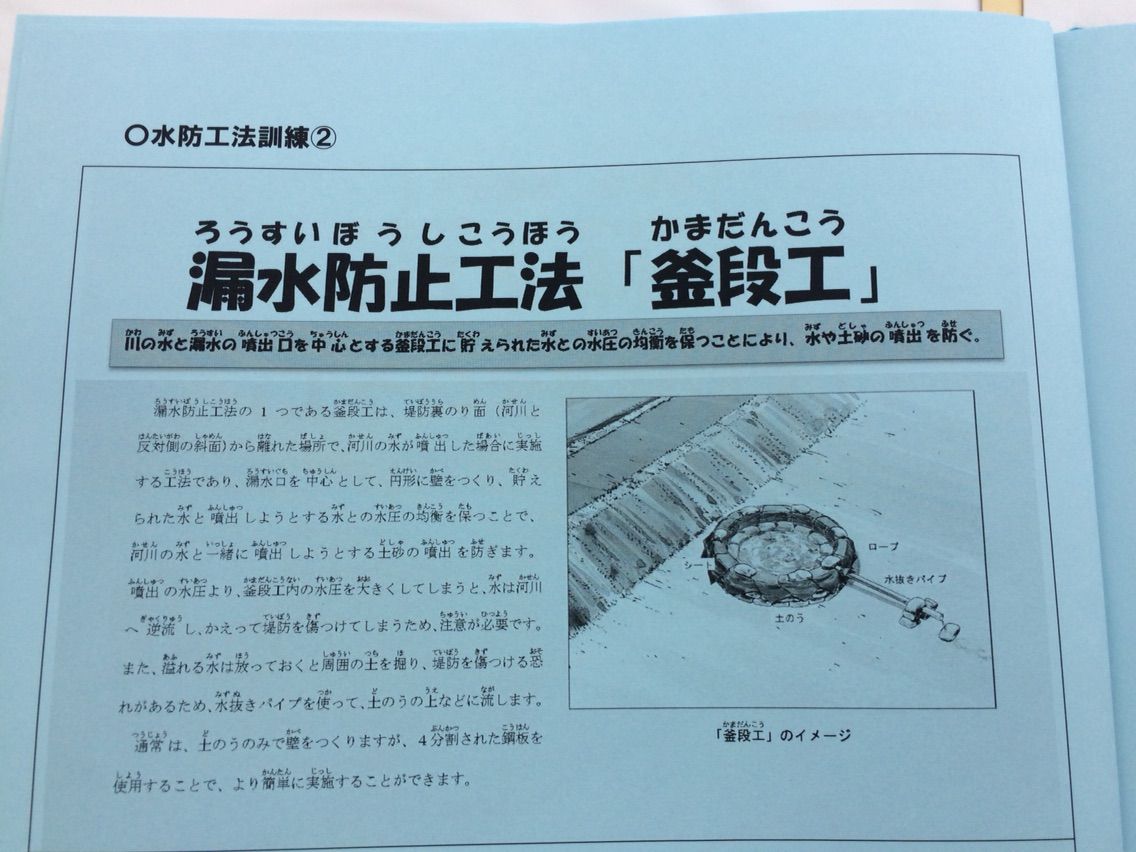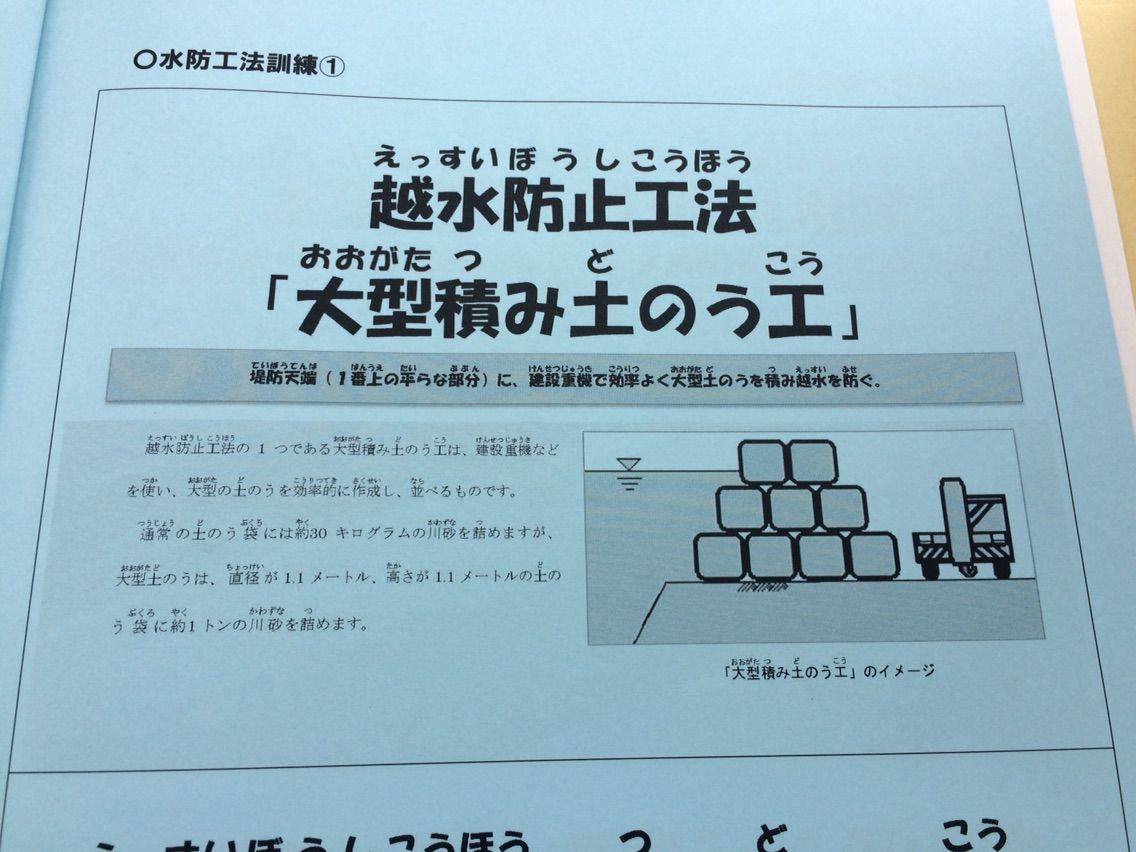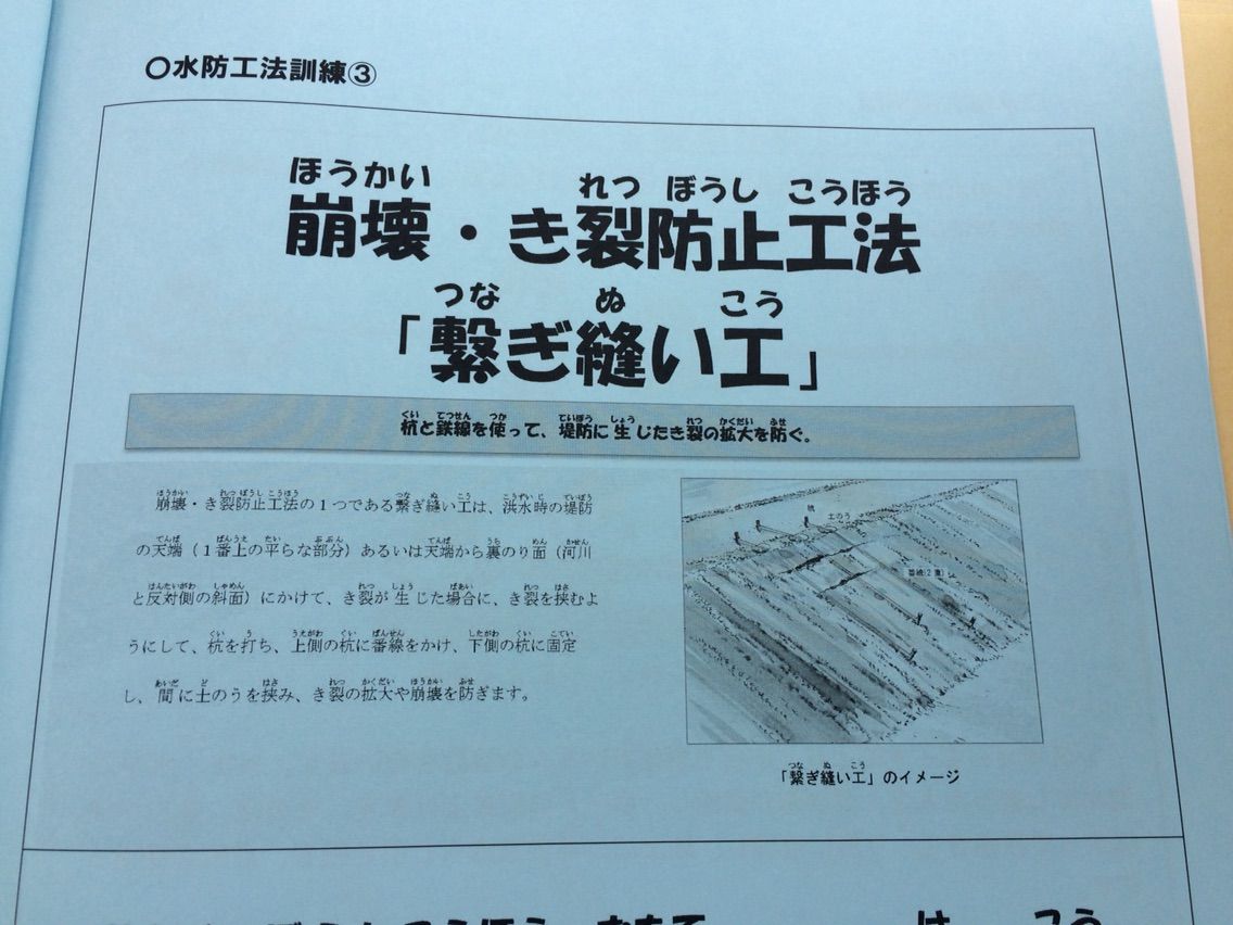 続いて、水防工法訓練が行われました。どれも、荒川の堤防からの越水や漏水に対応するものです。
