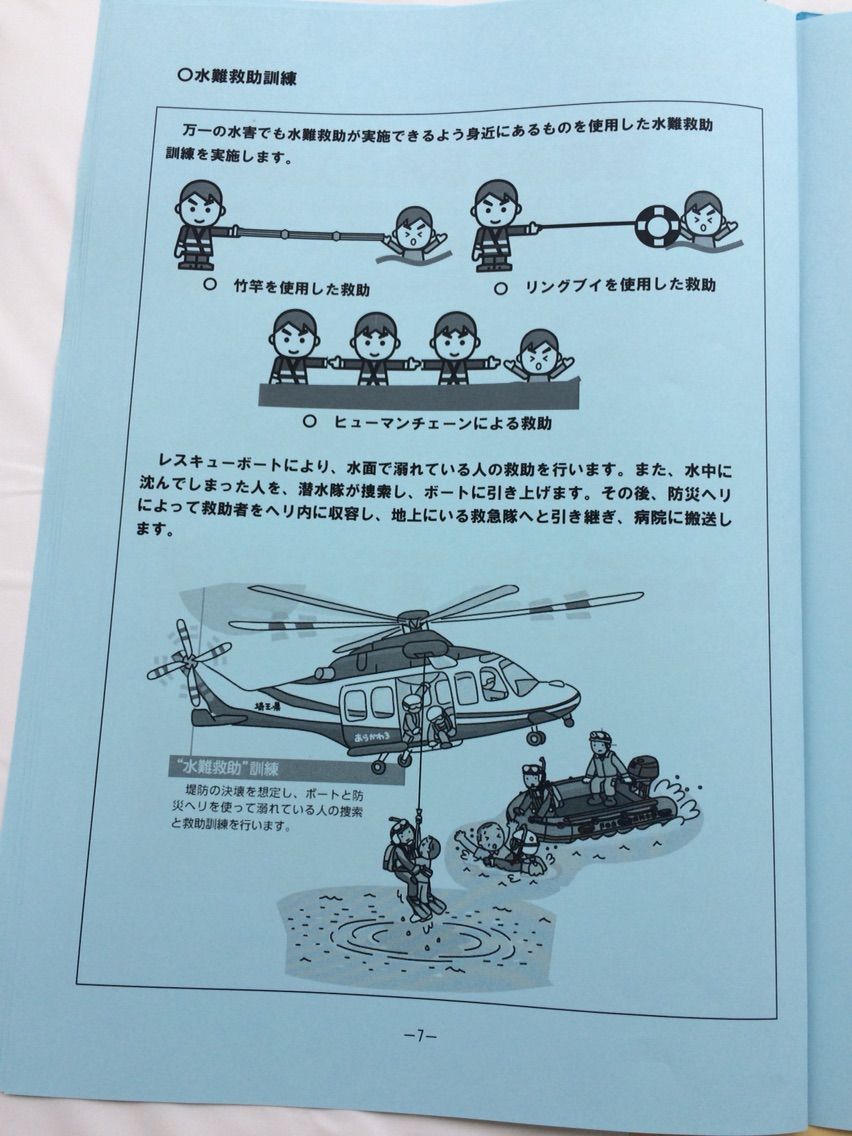 震度5以上の地震が発生した場合や洪水発生の怖れがある場合、防災ヘリコプターが直ちに出動し、上空から情報収集を行い、災害の発生状況を確認します。また、大規模な災害や状況が把握しにくい夜間の災害などでは、防災ヘリの赤外線カメラで現場の映像をリアルタイムで関係機関に送付し、地上の活動を支援します(本日の配布資料より)。