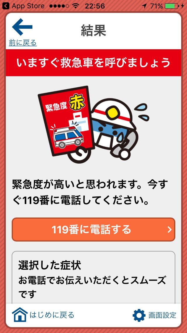 これは目の前の方の症状が緊急で救急車を呼ぶべきものか、どうなのか、わかるアプリです。