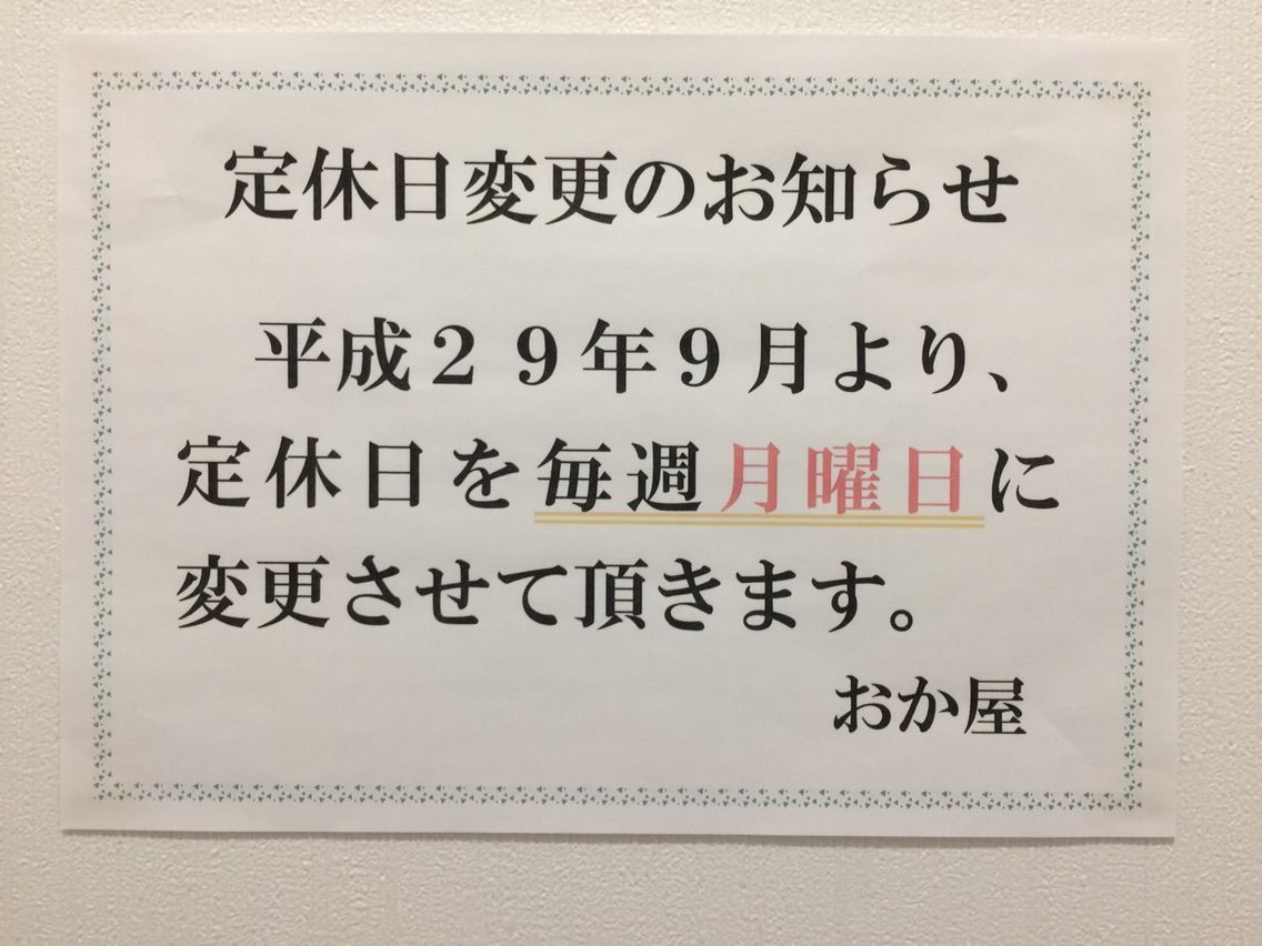 2017年07月26日 戸田市の美味しい居酒屋・おか屋さん 一周年記念で27日までランチ500円・夜のドリンクも半額! 戸田駅から戸田市文化会館に向けて途中にある居酒屋のおか屋さん、一周年記念ということで、7月27日までランチ500円サービスをやっています。夜のドリンクも半額です。 9月からは、月曜日定休になるそうです。 ◆ おか屋 戸田市大字新曽50番地 営業時間 昼の部 11時半〜14時 夜の部 17時〜23時 定休日 木曜日 「お店」カテゴリの最新記事 < 前の記事次の記事 > コメント コメントフォーム 名前 コメント 評価する リセット リセット 顔 星 投稿する 情報を記憶