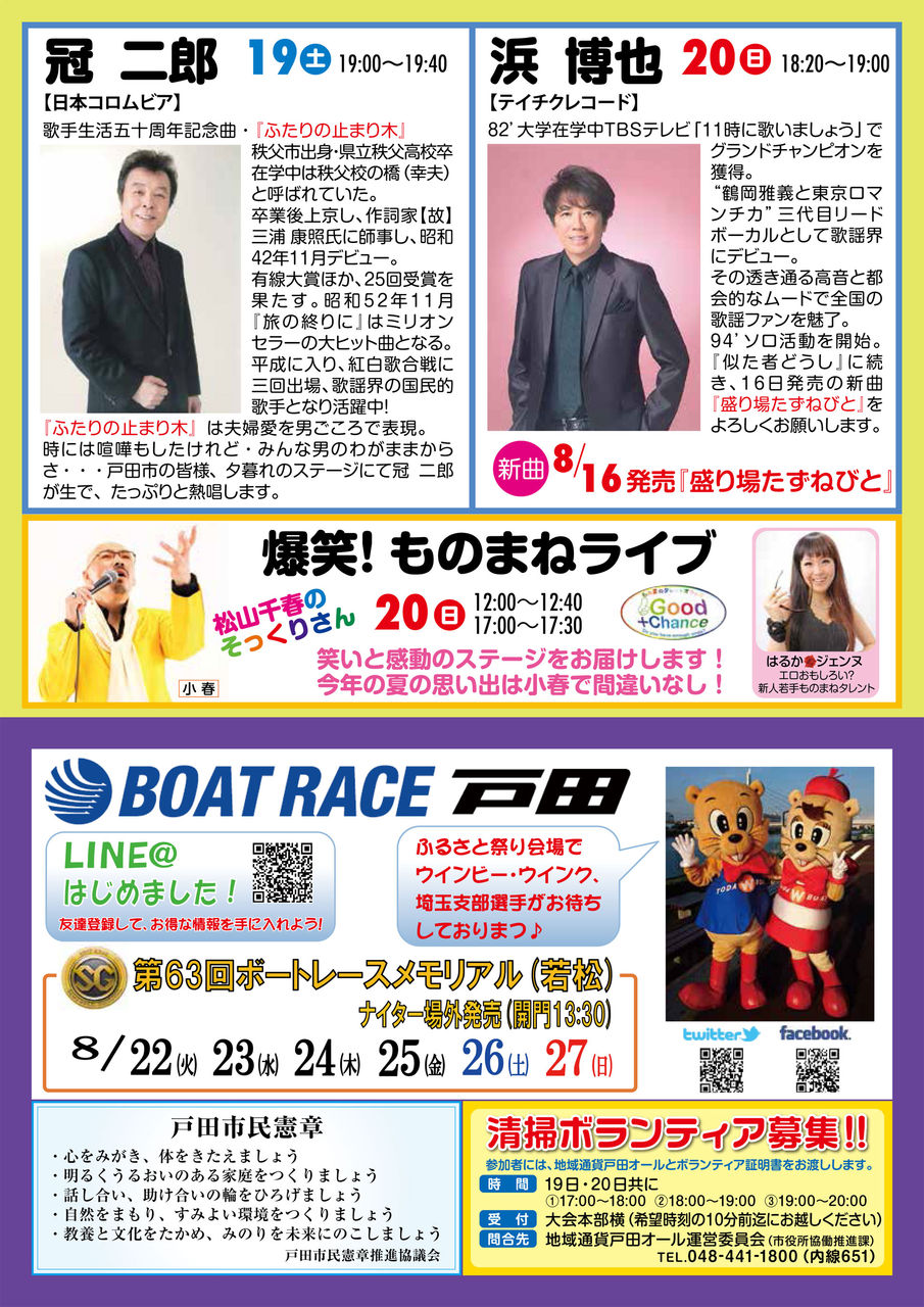 どうぞ、19日(土)20日(日)は、戸田ふるさと祭り会場に足をお運びくださいね。