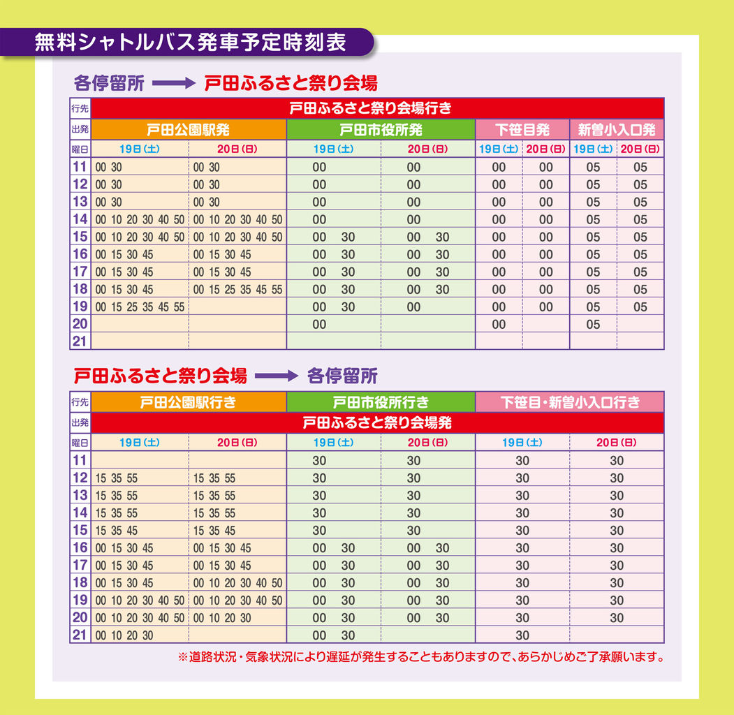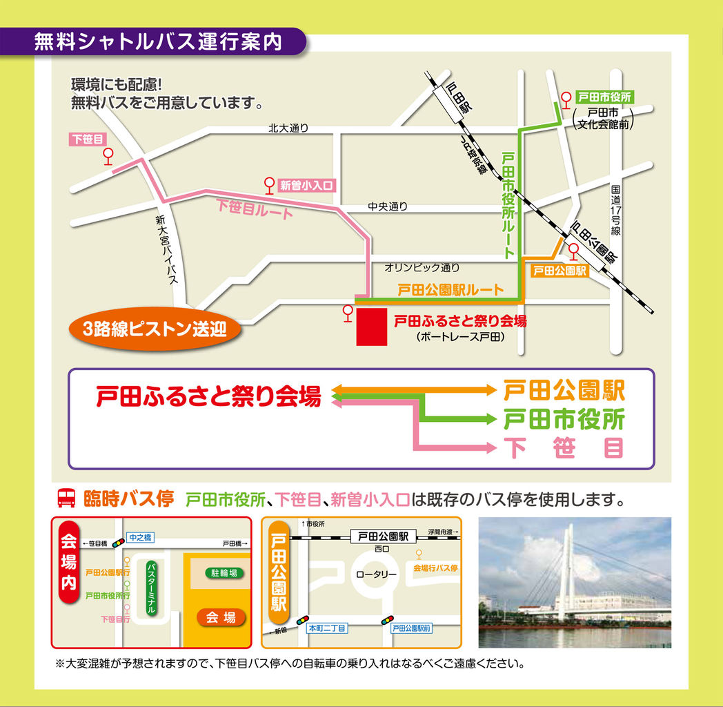 今年の戸田ふるさと祭りは、8月19日(土)20日(日)に開催。会場はこれまで通り、ボートレース戸田市の屋外駐車場。市内各所から無料の送迎バスが出ます。