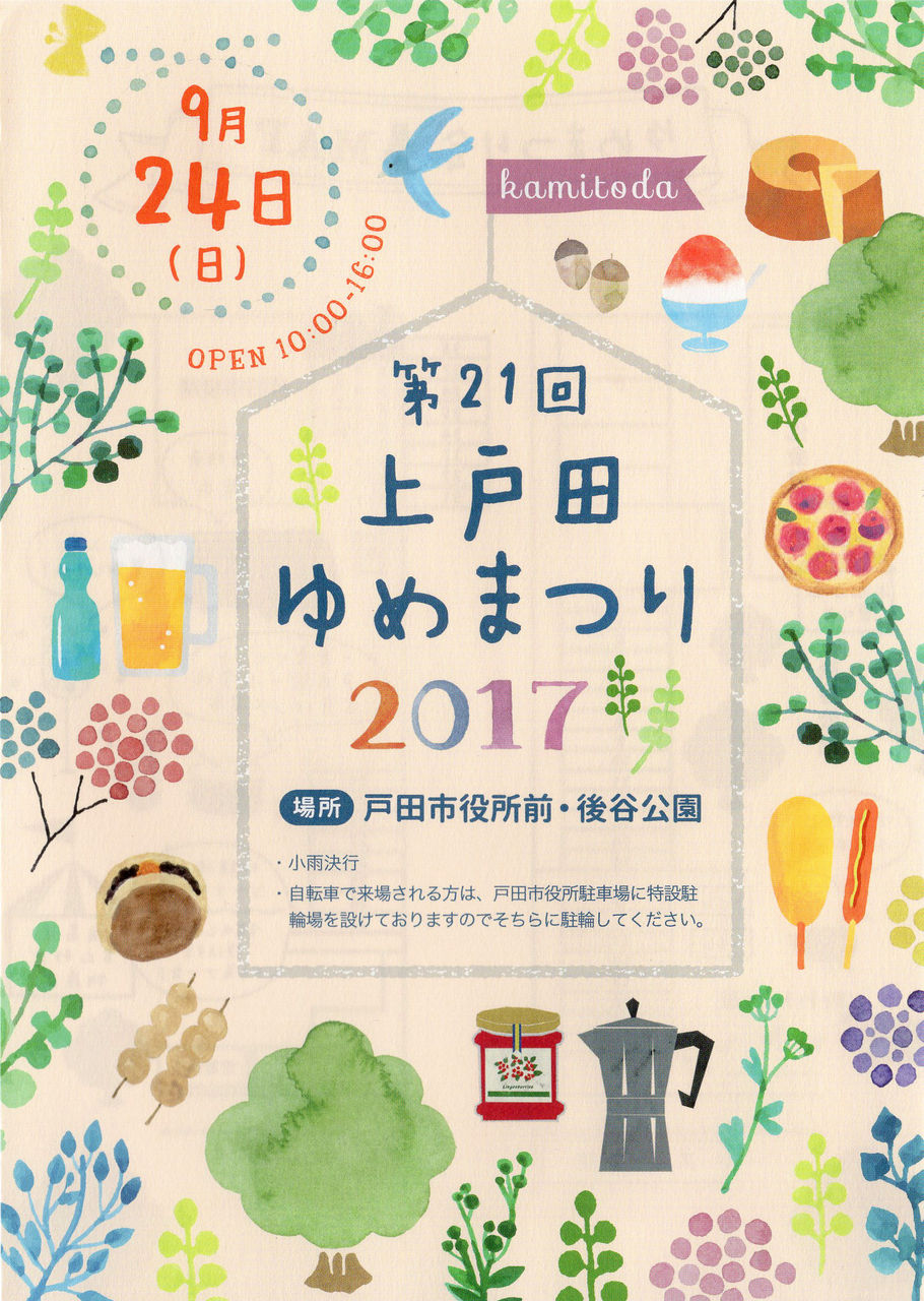 9月24日(日曜日)、戸田市役所西側を歩行者天国にして10時から16時まで開催されます。